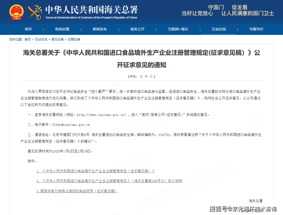“保举注册拟从18类降至11类,特殊炊事食物、保健食物、调味料、食用油脂等进口将简化!”2025年1月3日,中国海关总署发布关于《中华人平易近国进口食物境外出产企业注册办理(收罗看法稿)》公开收罗看法的通知,社会能够正在2025年2月19日前反馈相关看法。